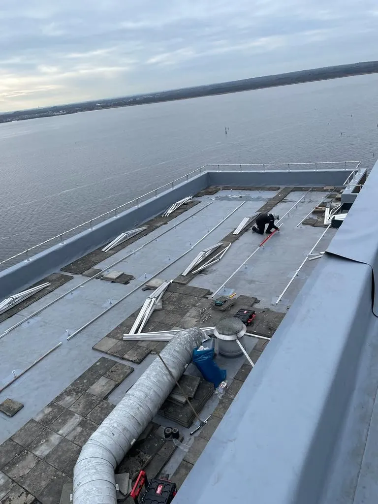 DUURZAME DAKRENOCATIE ALMERE AAN RANK FLATGEBOUW OP DE PIER