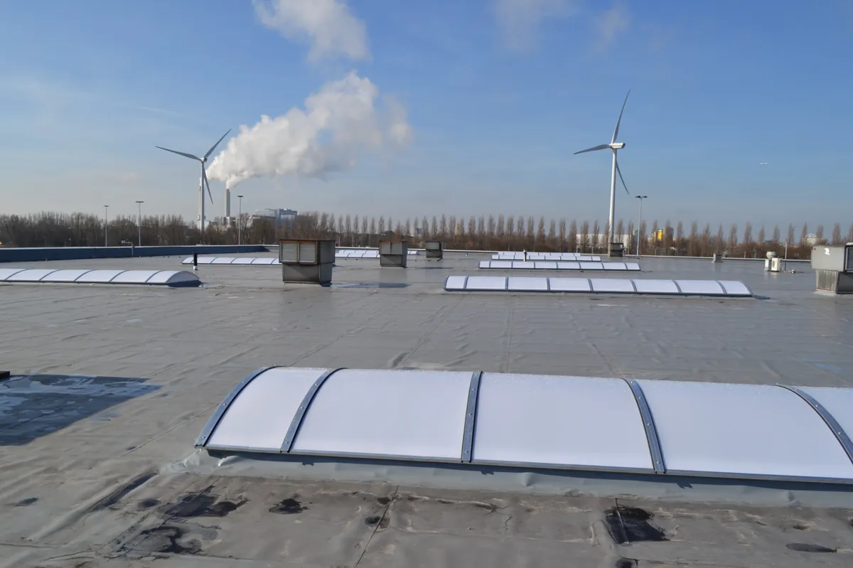 Opdrachtgever heeft bewust gekozen voor Rhepanol hfk. Betrouwbaarheid was voor deze opdrachtgever van groot belang. Het dak wordt voorzien van zonnepanelen. Roofwatcher in combinatie met Rhepanol dakbedekking heeft het vertrouwen aan opdrachtgever kunnen geven. Rhepanol dakbedekking kan onder alle omstandigheden functioneren. Onderhoud van het dakpakket moest tot een minimum worden beperkt vanwege het grote aantal zonnepanelen op het dak. Rhepanol verouderd niet, en dient dus ook niet te worden vervangen gedurende de levensduur van het gebouw. Wie in total cost of ownership denkt, komt automatisch uit bij Rhepanol.